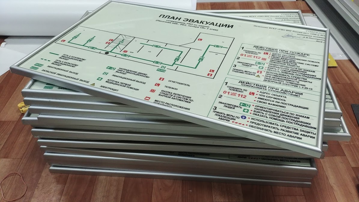 - Планы эвакуации. Они должны быть не только во всех помещениях, где даже теоретически могут находиться люди, но и во всех офисах компании. Есть кабинет, рабочая комната — в ней должен быть план эвакуации.